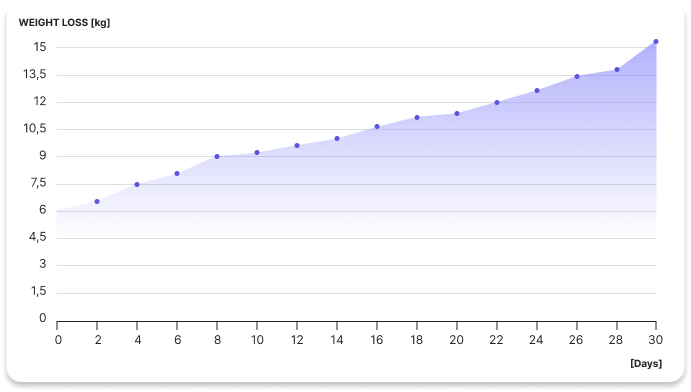 Ergebnis nach 30 Tagen: durchschnittlich 15 kg weniger